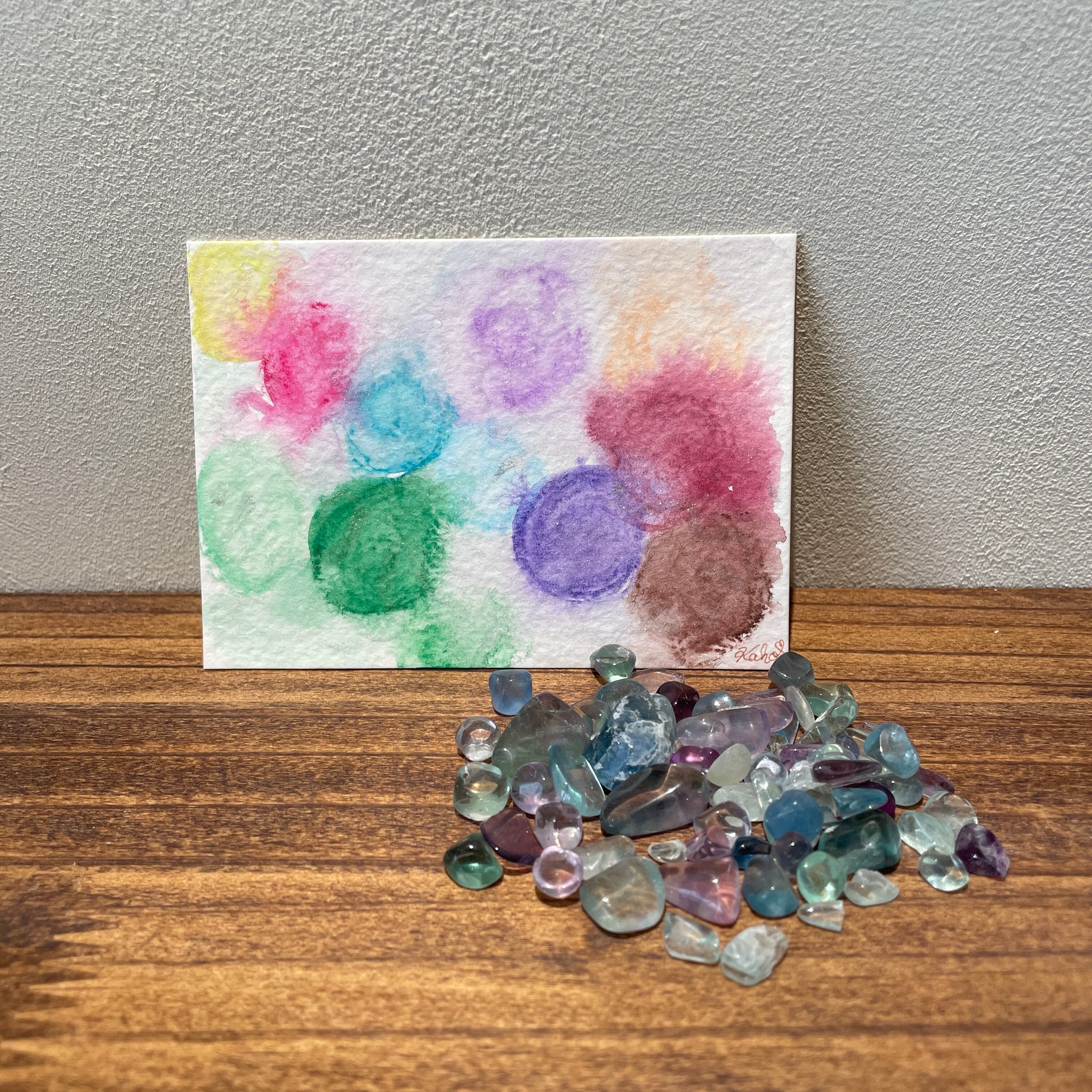 Breathing Stoneとは、天然石のさざれ石から受けたイメージを、小さなカードサイズの絵として表現し、その二つを合わせた作品です。
